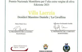 un altra menzione speciale per il nostro Multivarietale Siamo orgogliosi di annunciare che il nostro olio extra vergine di oliva Villa Laertia ha ricevuto una Menzione D'onore al prestigioso Concorso Nazionale Montiferru, uno dei più importanti riconoscimenti dedicati all'eccellenza olearia italiana. Un premio che riconosce non solo la qualità del nostro olio, ma anche la passione, la dedizione e il rispetto per la nostra terra che ogni giorno mettiamo nel nostro lavoro. Grazie a chi ogni anno sceglie Villa Laertia: questo riconoscimento è anche vostro. Scopri di più sulla nostra produzione → i nostri oli